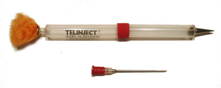 Practice Syringes with Practice Needles are Available: The 3 ml practice syringe now comes with a practice needle. The 3 ml practice syringe, with an orange stabilizer, for use with the 11 mm inside diameter blowpipes. They weight approximately the same as a loaded 2 ml or 3 ml Telinject syringe. Use of these allows one to practice using the blowpipe system without damaging the actual blowpipe syringe or needle. A practice needle is also available. This needle has no outlets and when applied to the blowpipe syringe allows the syringe to be loaded with water and primed with air which, like the standard blowpipe practice syringe, weighs approximately the same as a loaded 2 ml, 3 ml, or 5 ml Telinejct syringe. Add a Plastic Stabilizer to the end of the Practice Syringe to practice with the High Performance Long Distance Blowpipe. The practice needle is available with all Telinject syringes.